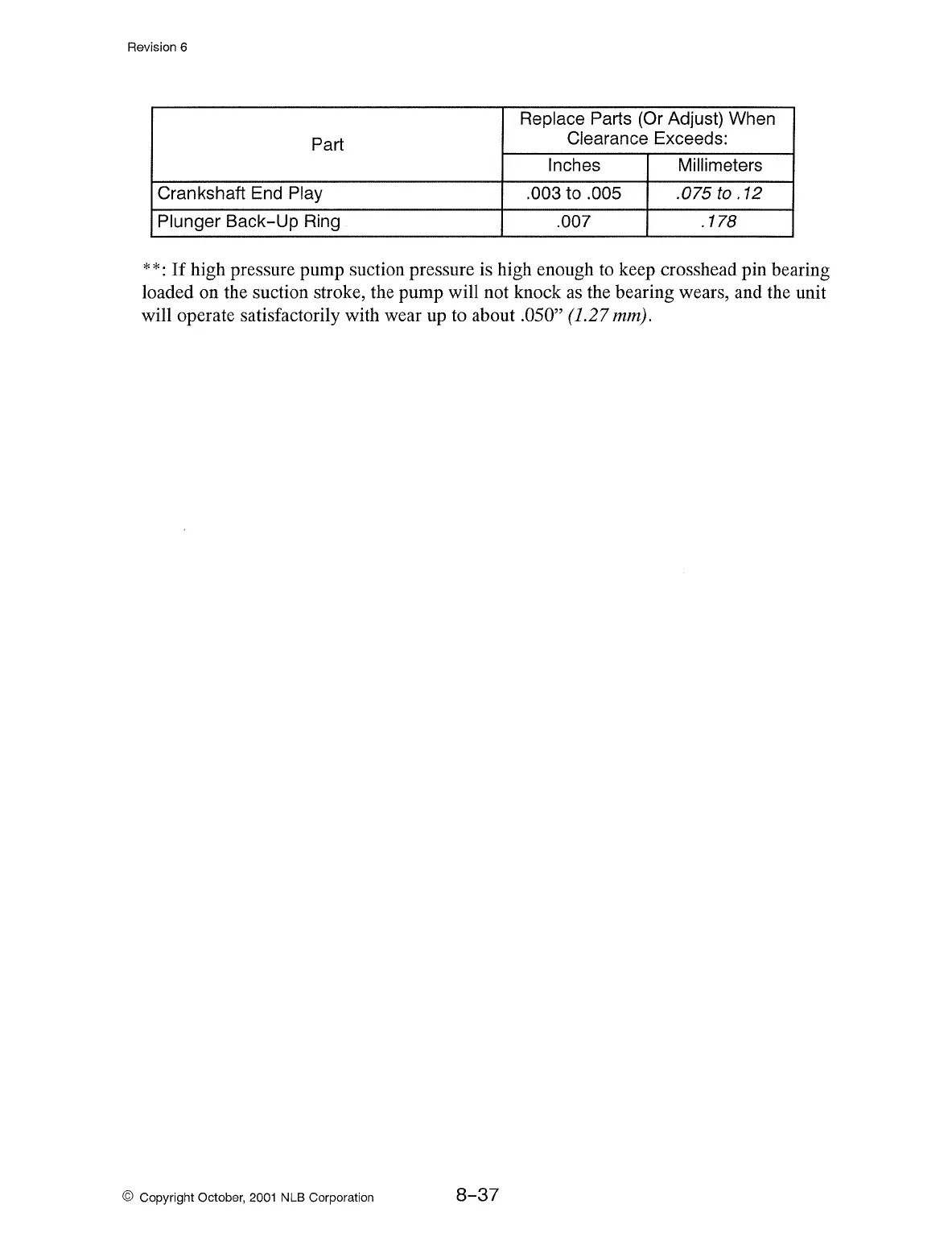 loaded on the suction stroke, the pump will not knock as the bearing wears, and the unit
