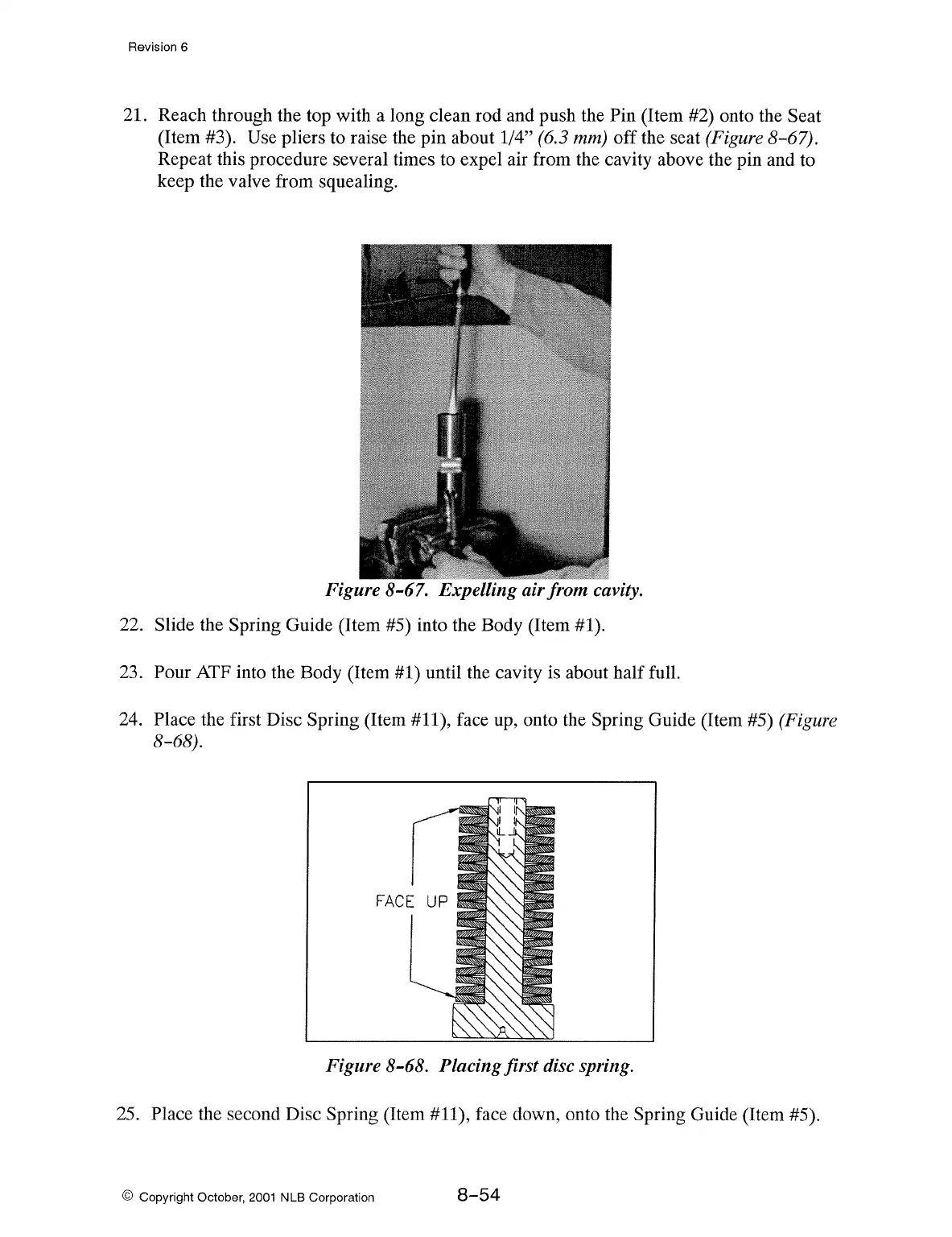 21. Reach through the top with a long clean rod and push the Pin (Item #2) onto the Seat
