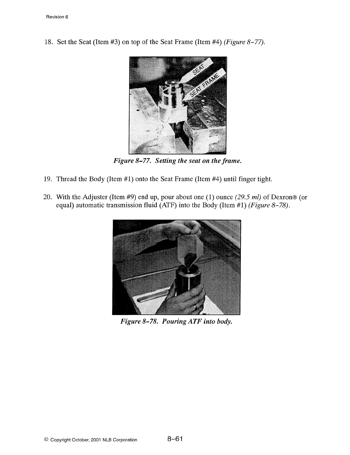 equal) automatic transmission fluid (ATF) into the Body (Item #1)