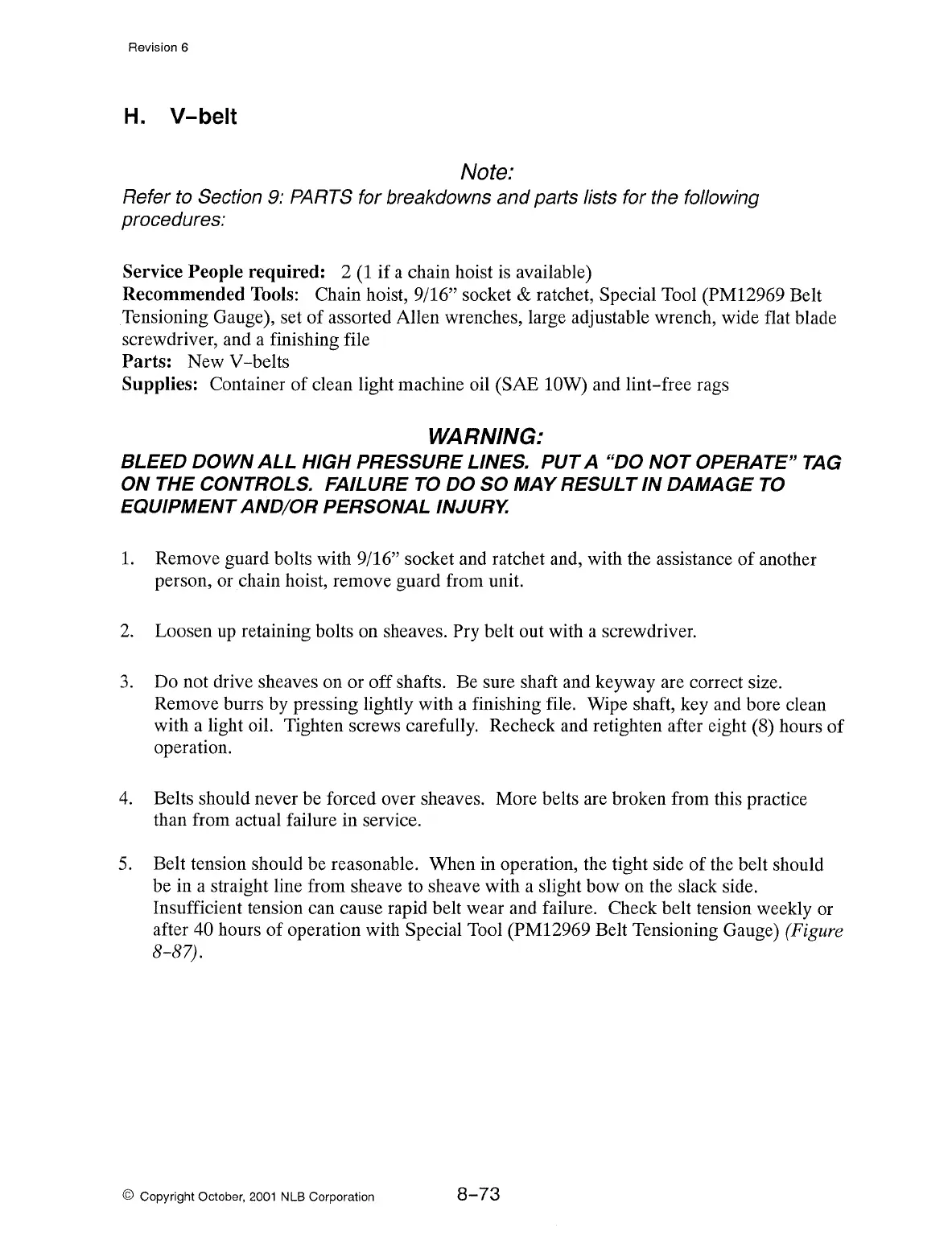 retaining bolts on sheaves. Pry belt out with a screwdriver.