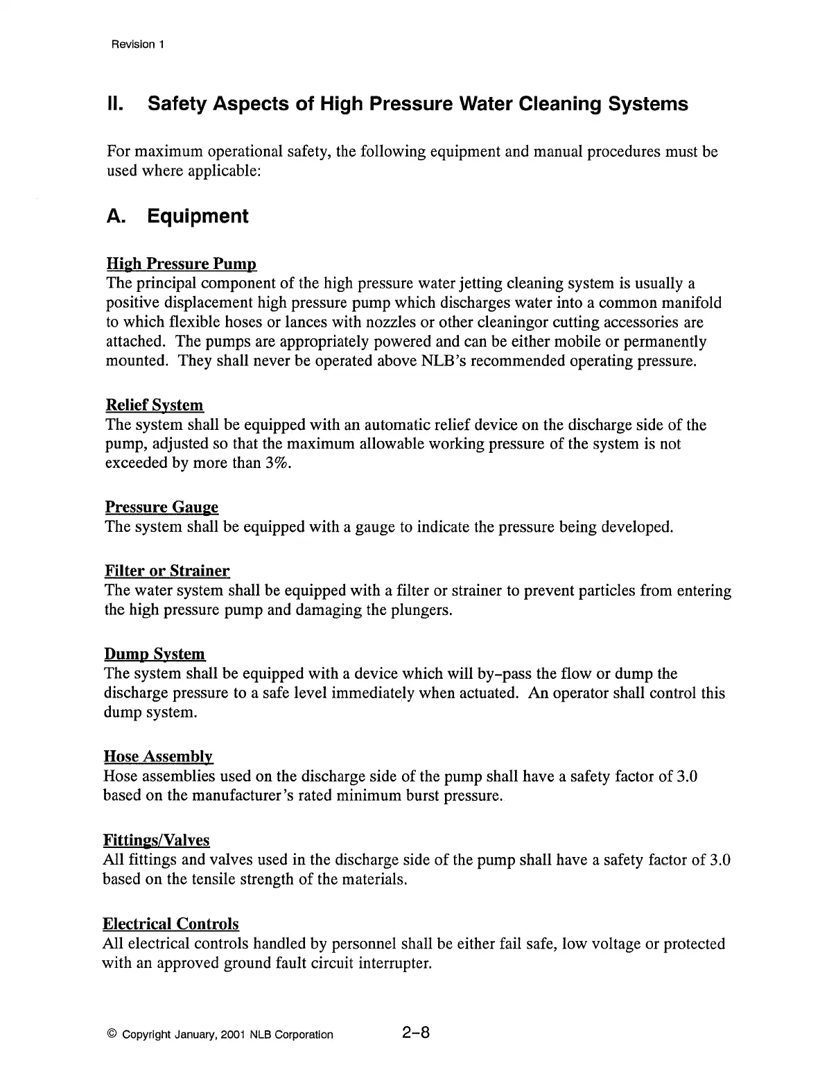 II. Safety Aspects of High Pressure Water Cleaning Systems