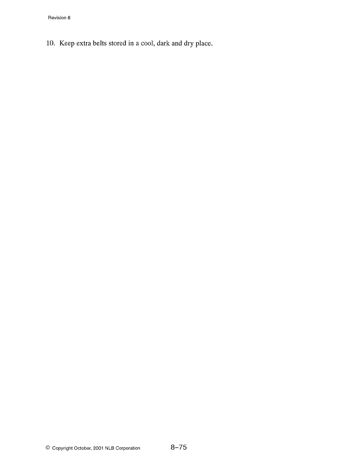 10. Keep extra belts stored in a cool, dark and dry place.
