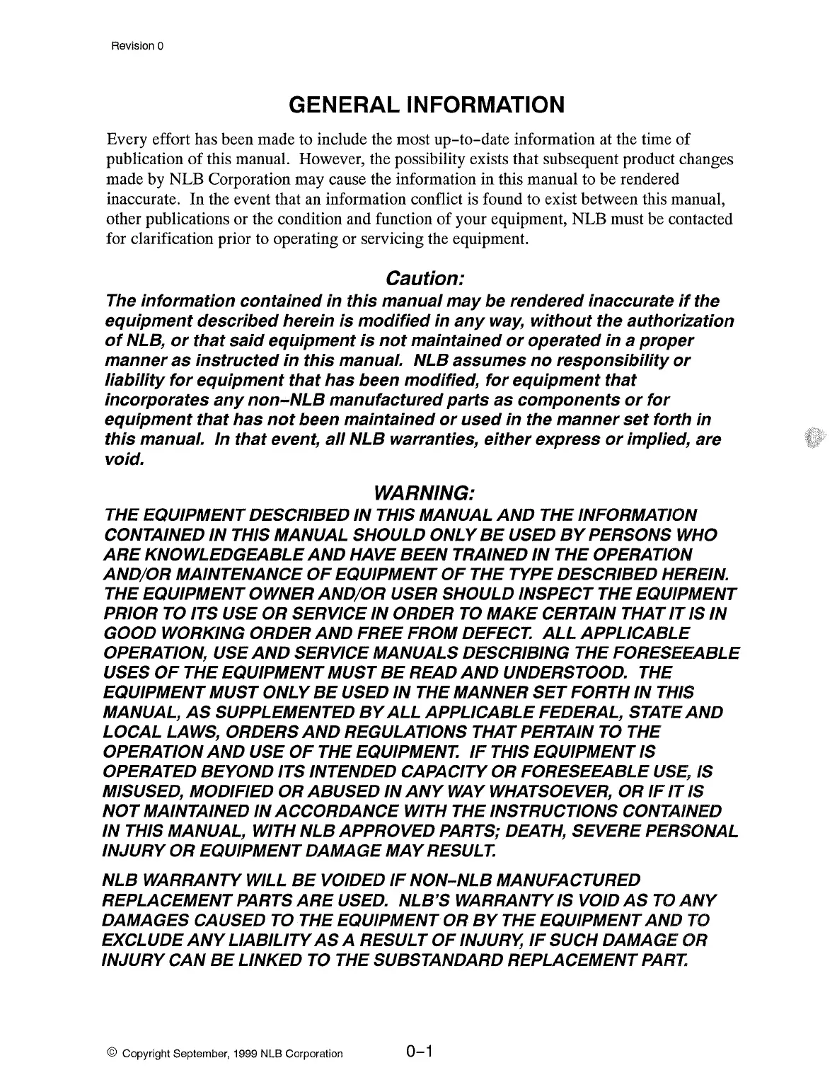 © Copyright September, 1999 NLB Corporation 0-1
