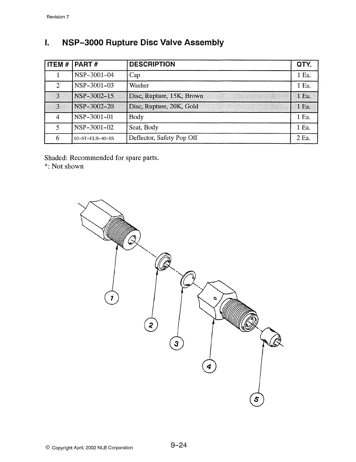 Shaded: Recommended for spare parts.