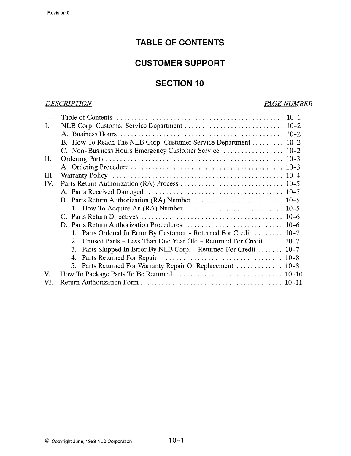 Parts Shipped In Error By NLB Corp. - Returned For Credit