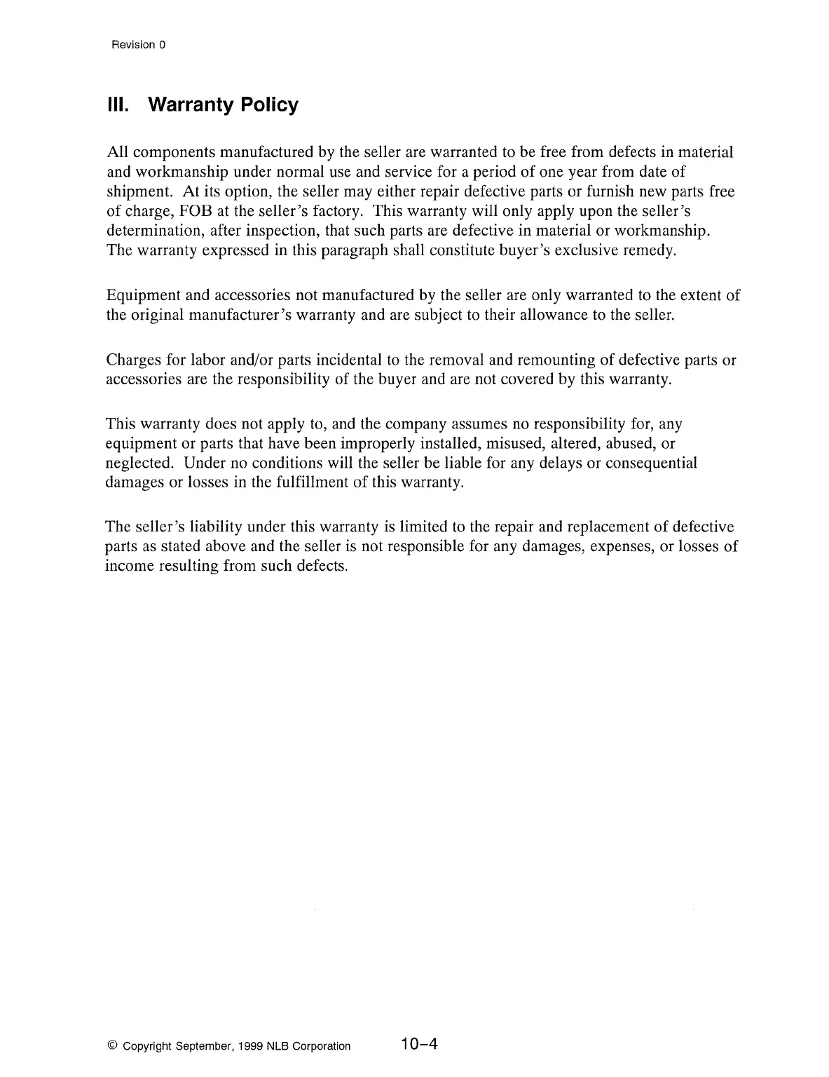 © Copyright September, 1999 NLB Corporation