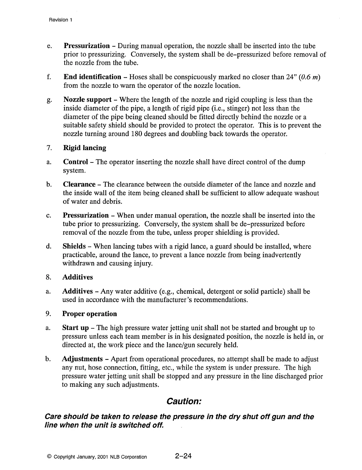pressure water jetting unit shall be stopped and any pressure in the line discharged prior