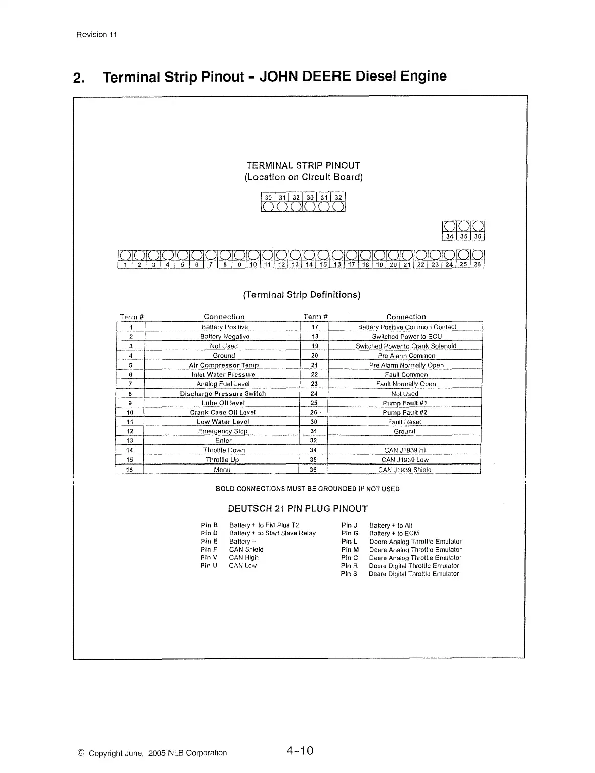 Terminal Strip Pinout - JOHN DEERE Diesel Engine