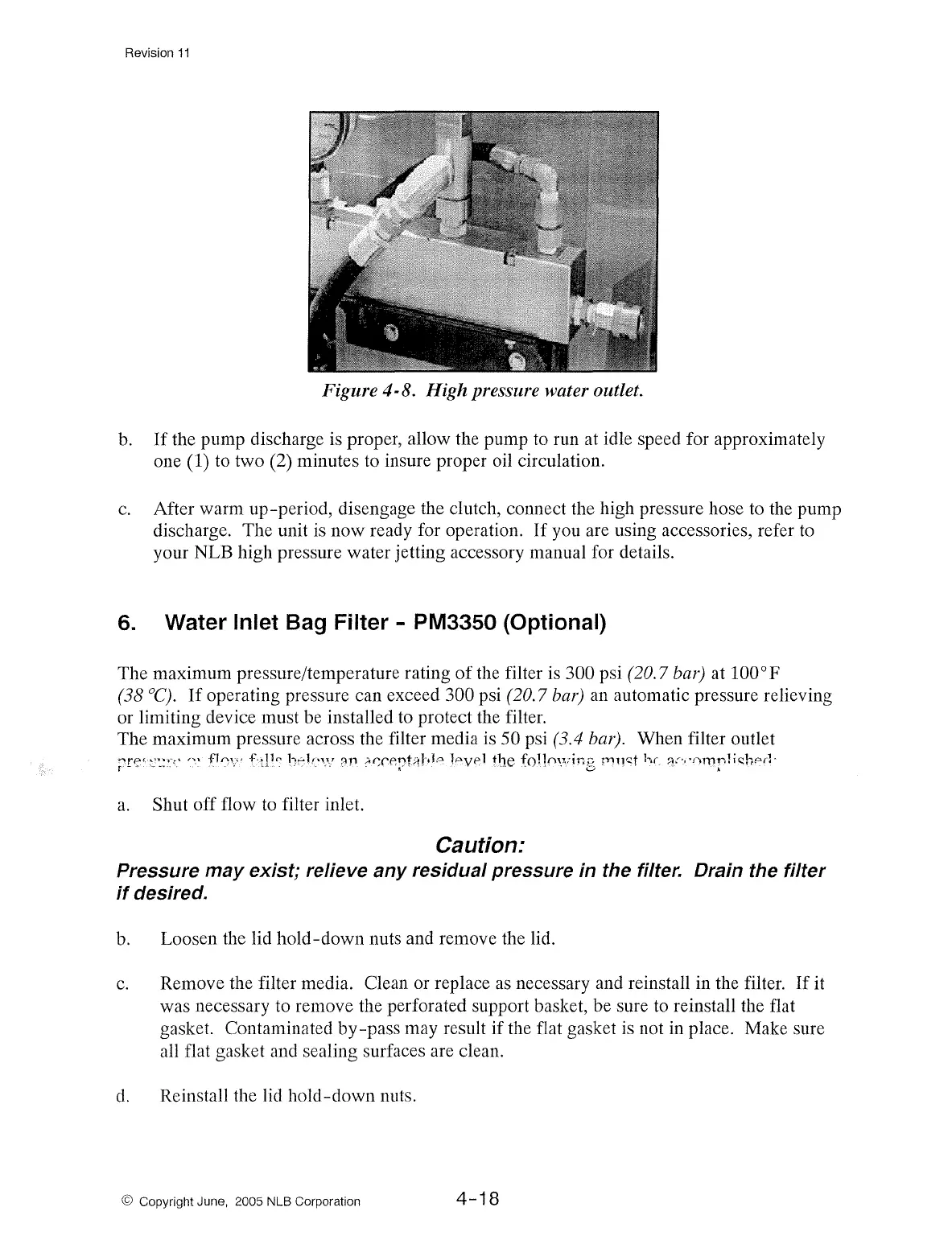After warm up-period, disengage the clutch, connect the high pressure hose to the pump
