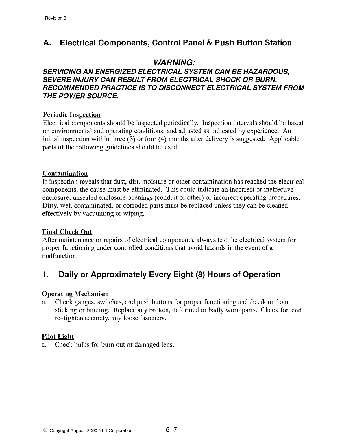 1. Daily or Approximately Every Eight (8) Hours of Operation