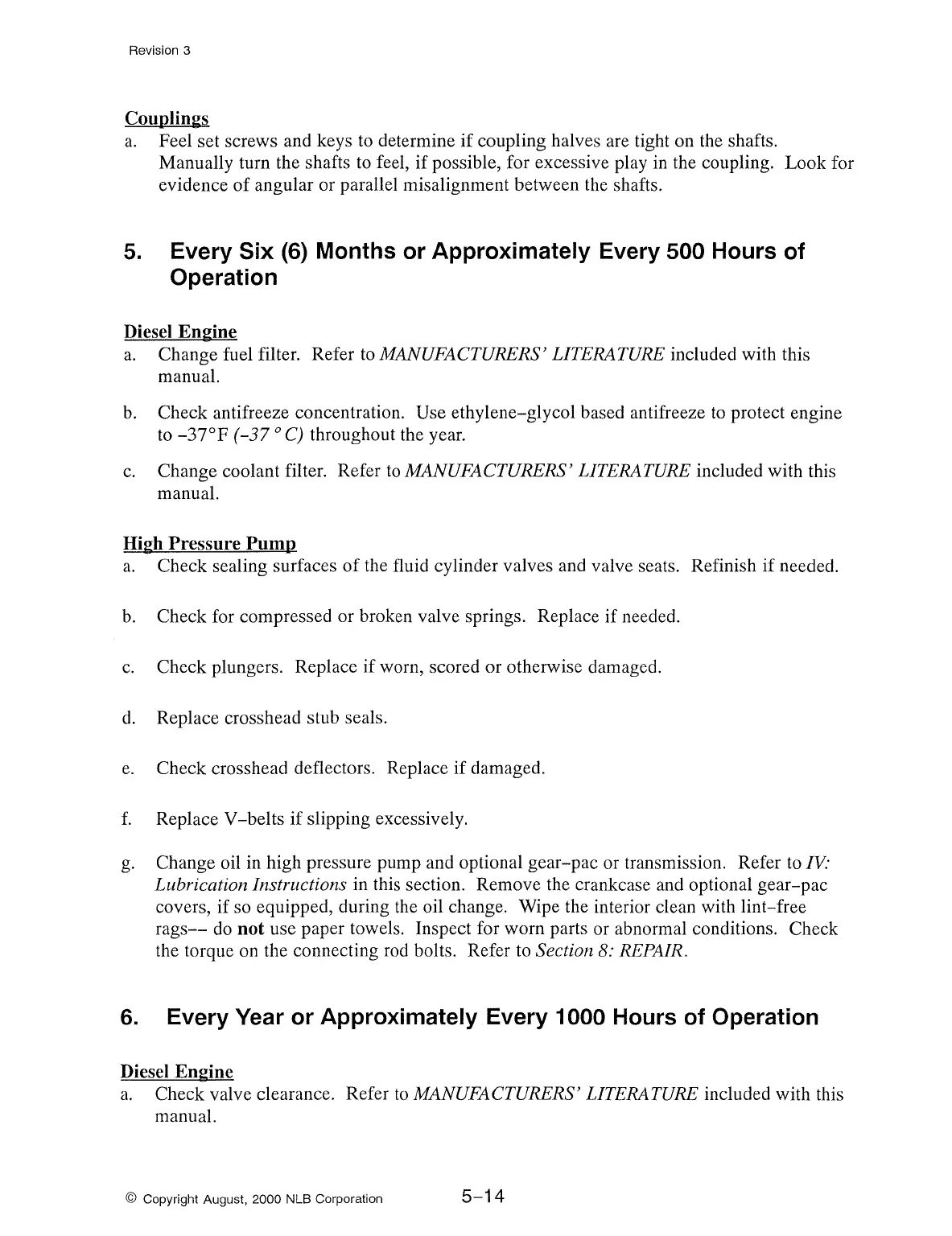 Change oil in high pressure pump and optional gear-pac or transmission. Refer