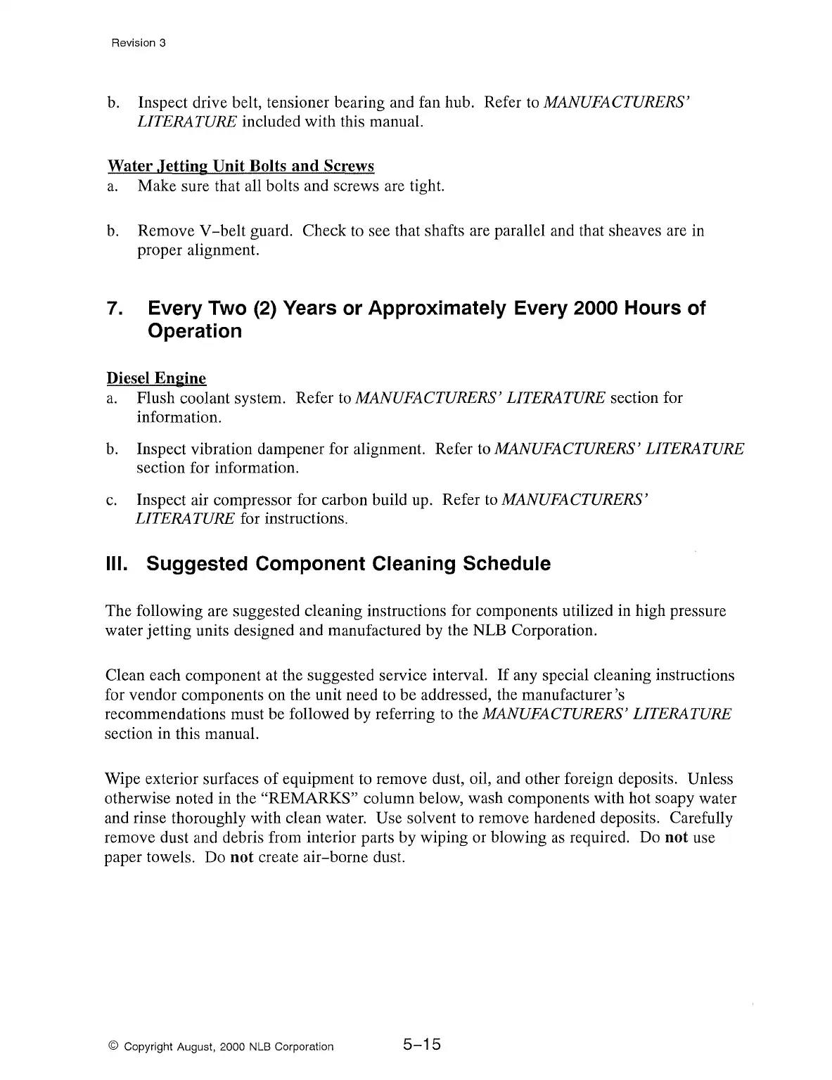 equipment to remove dust, oil, and other foreign deposits. Unless
