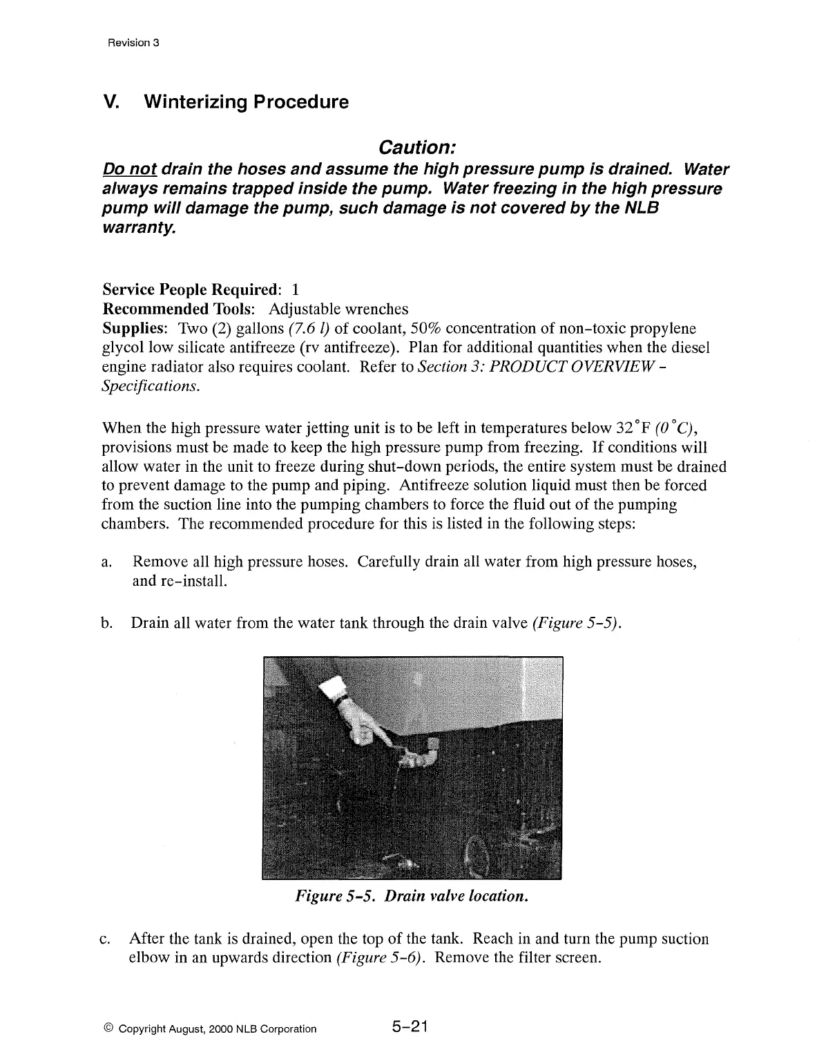 provisions must be made to keep the high pressure pump from freezing.