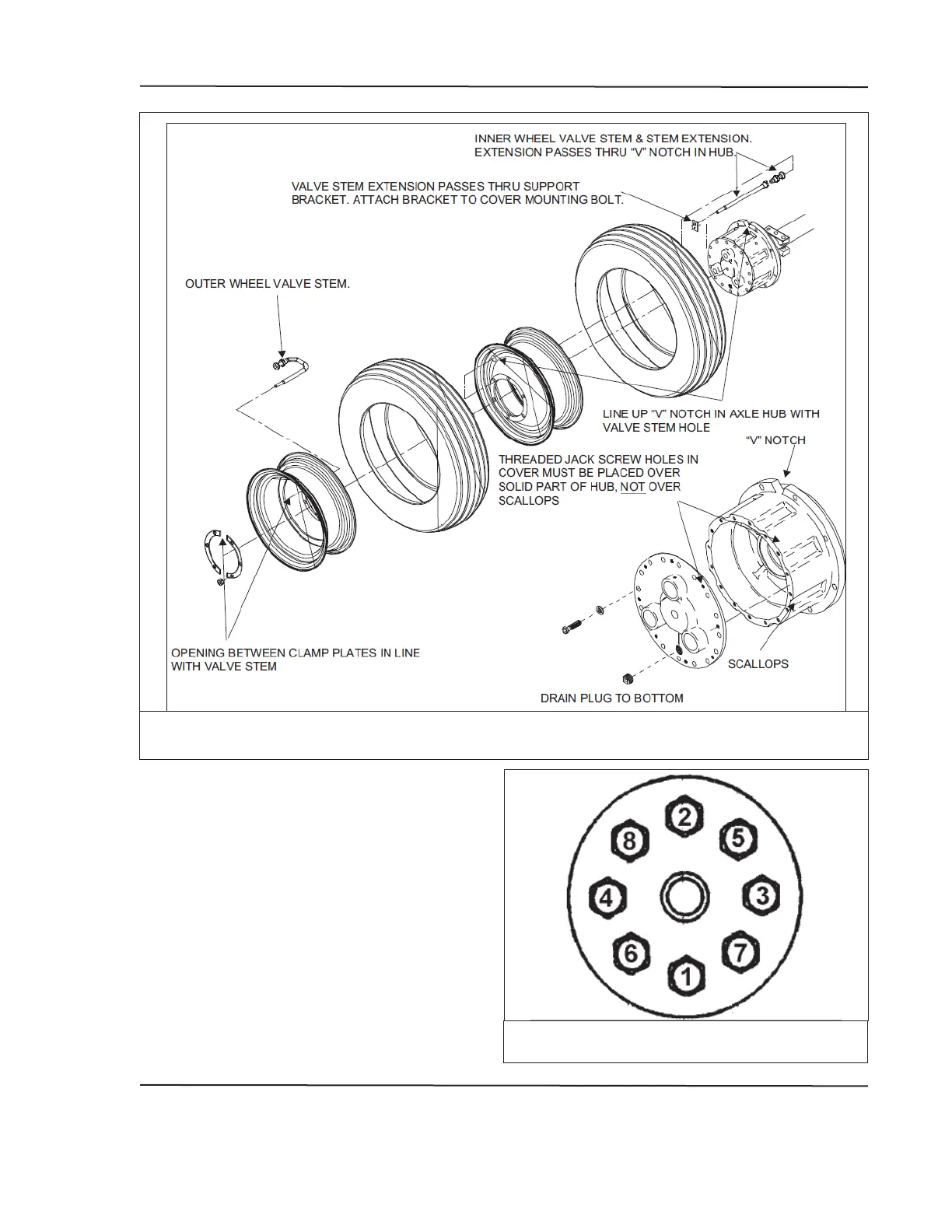 FIGURE 1. PROPER INSTALLATION OF AXLE HUB COVER PLATE AND DUAL