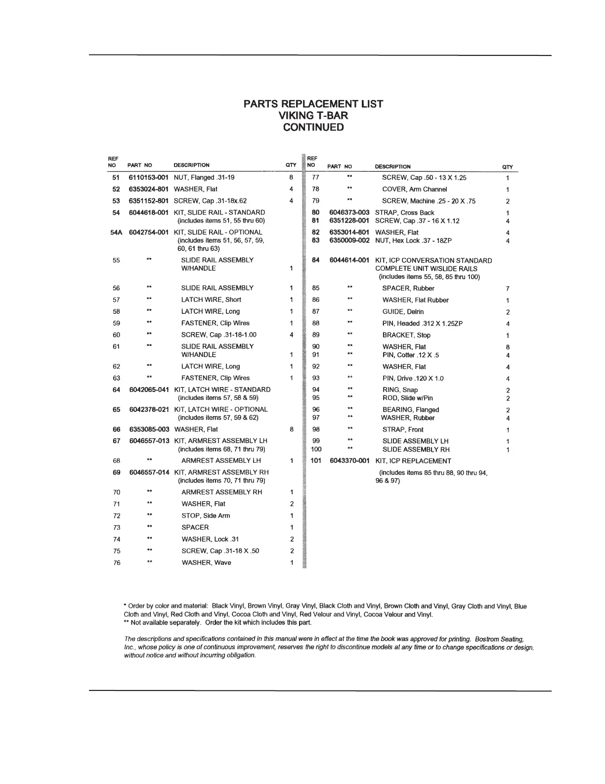 BOSTROM SEAT, T-BAR