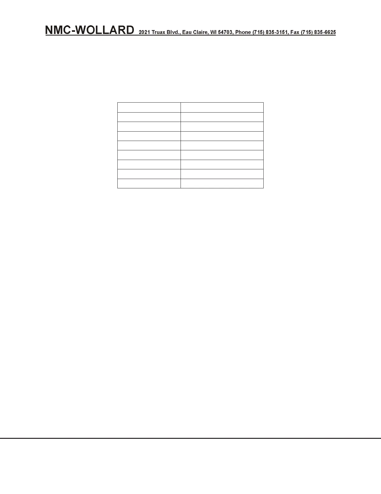 NMC-WOLLARD TMPS-200 - Effectivity Code