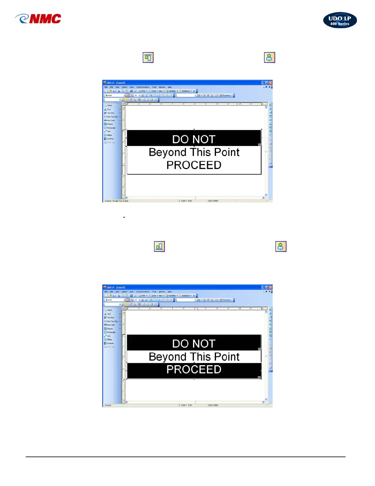 the Design/Alignment Tool Bar. The label should appear as in Figure 12. The