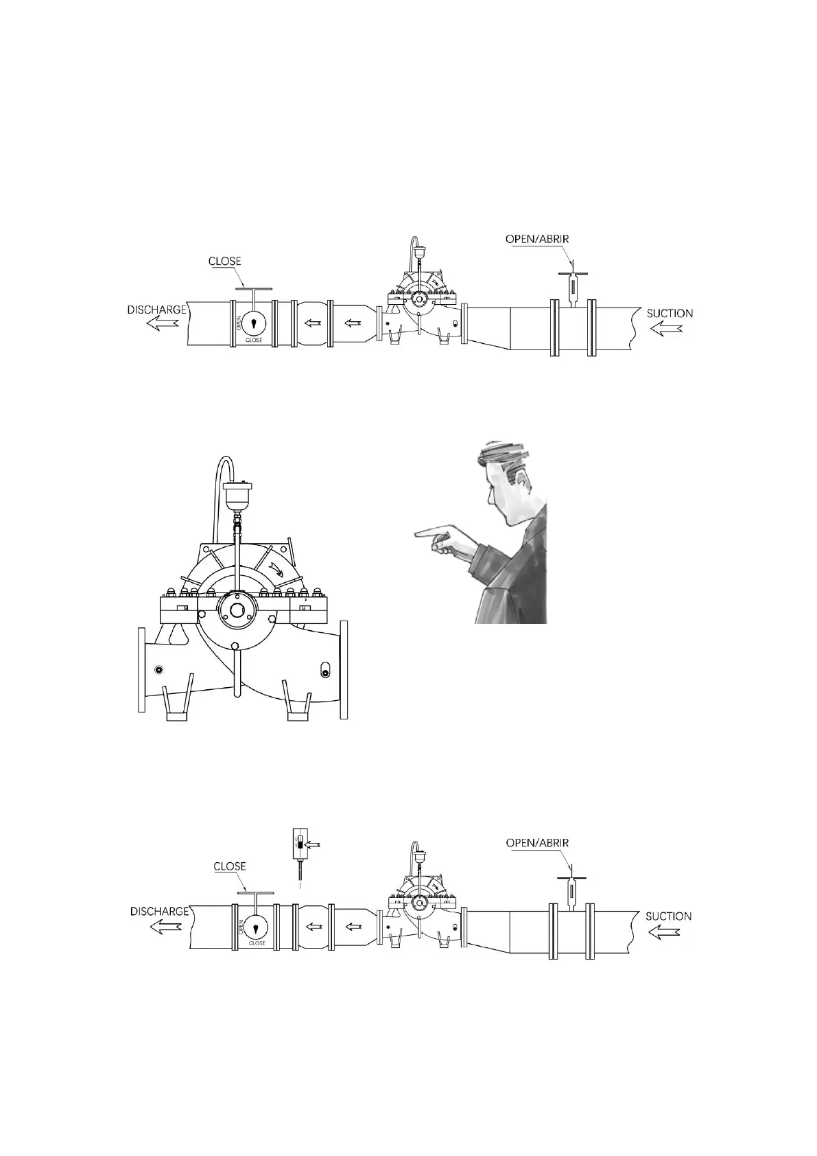 3. Open the gate valve at the pump suction and close the valve at the pump discharge.
