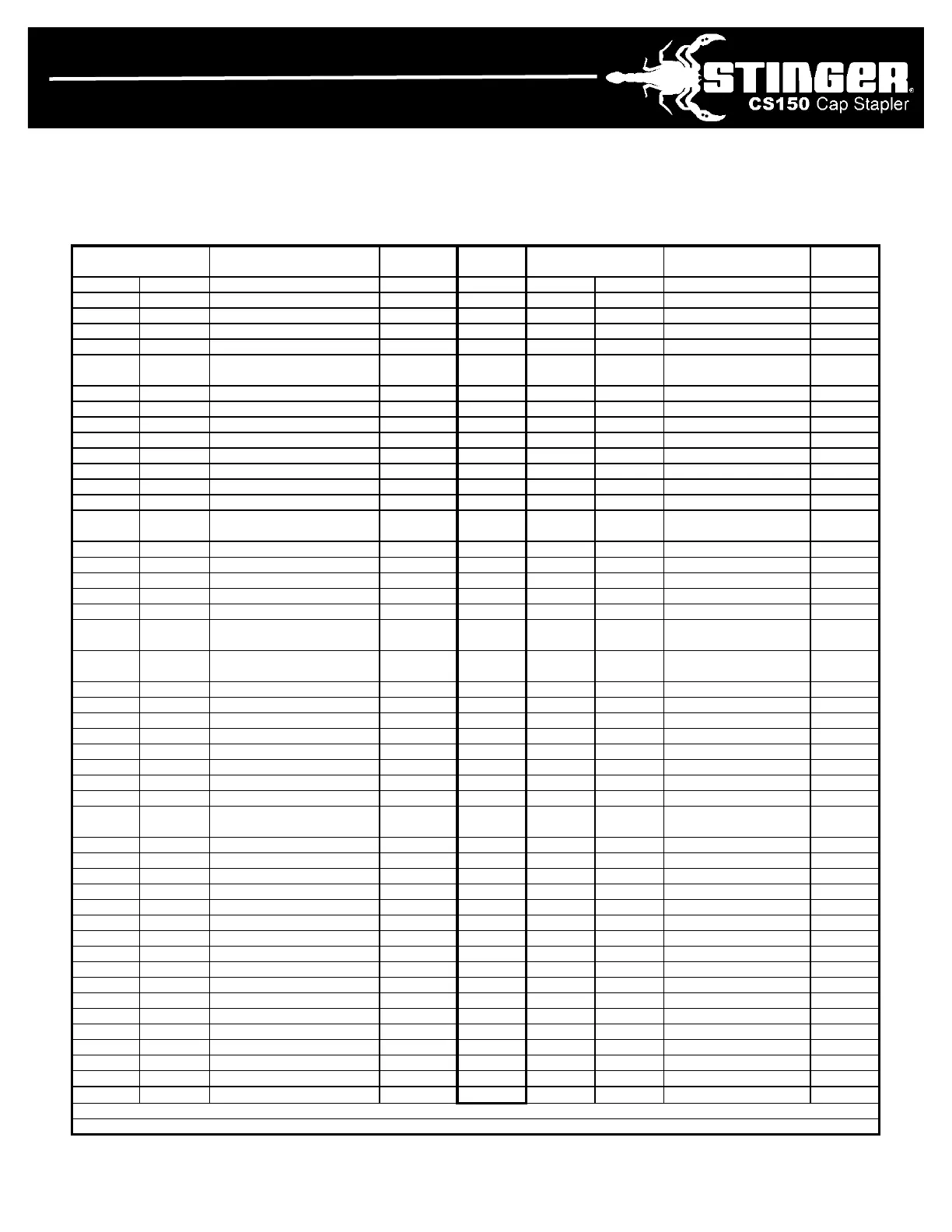 LISTE DES PIÈCES DU STINGER CS150