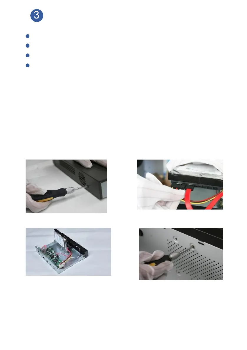 Connect data wire and power wire to Main Board Screw HDD to the bottom, replace cover