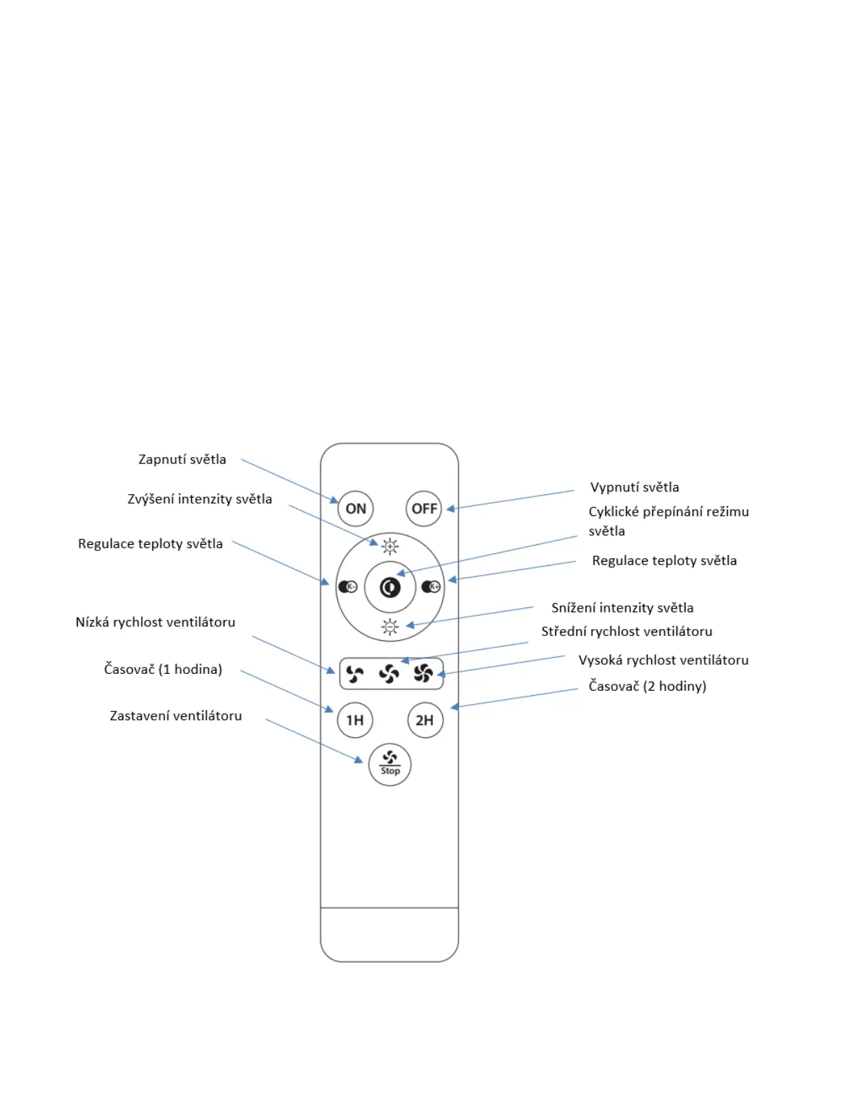 ventilátoru. Vzhledem k tomu, že je infračervené, můžete jedním ovladačem ovládat více ventilátorů