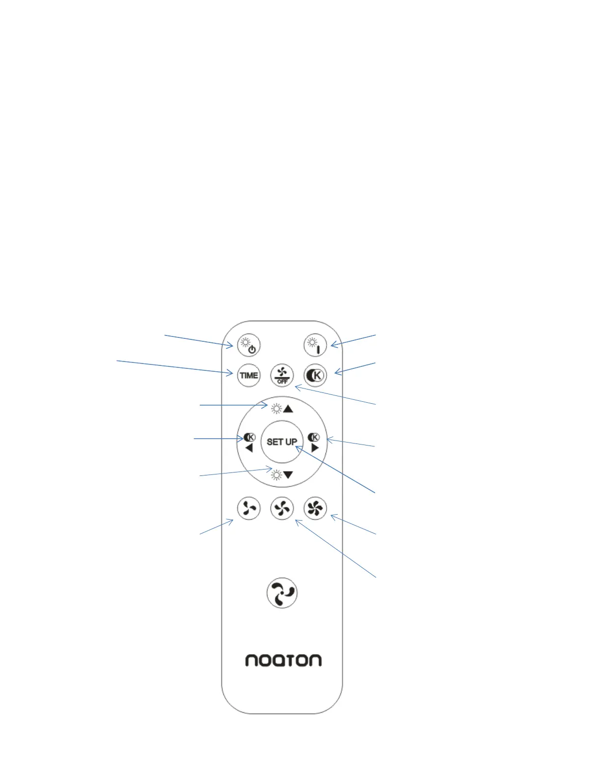 je třeba zajistit, aby mezi ovladačem a ventilátorem nebyly žádné překážky a ovladač mířil svým horním