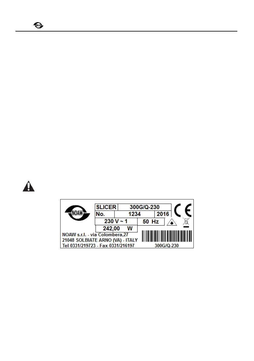 - targa di identificazione costruttore, macchina, dati tecnici e marcatura CE; posta sul basamento.