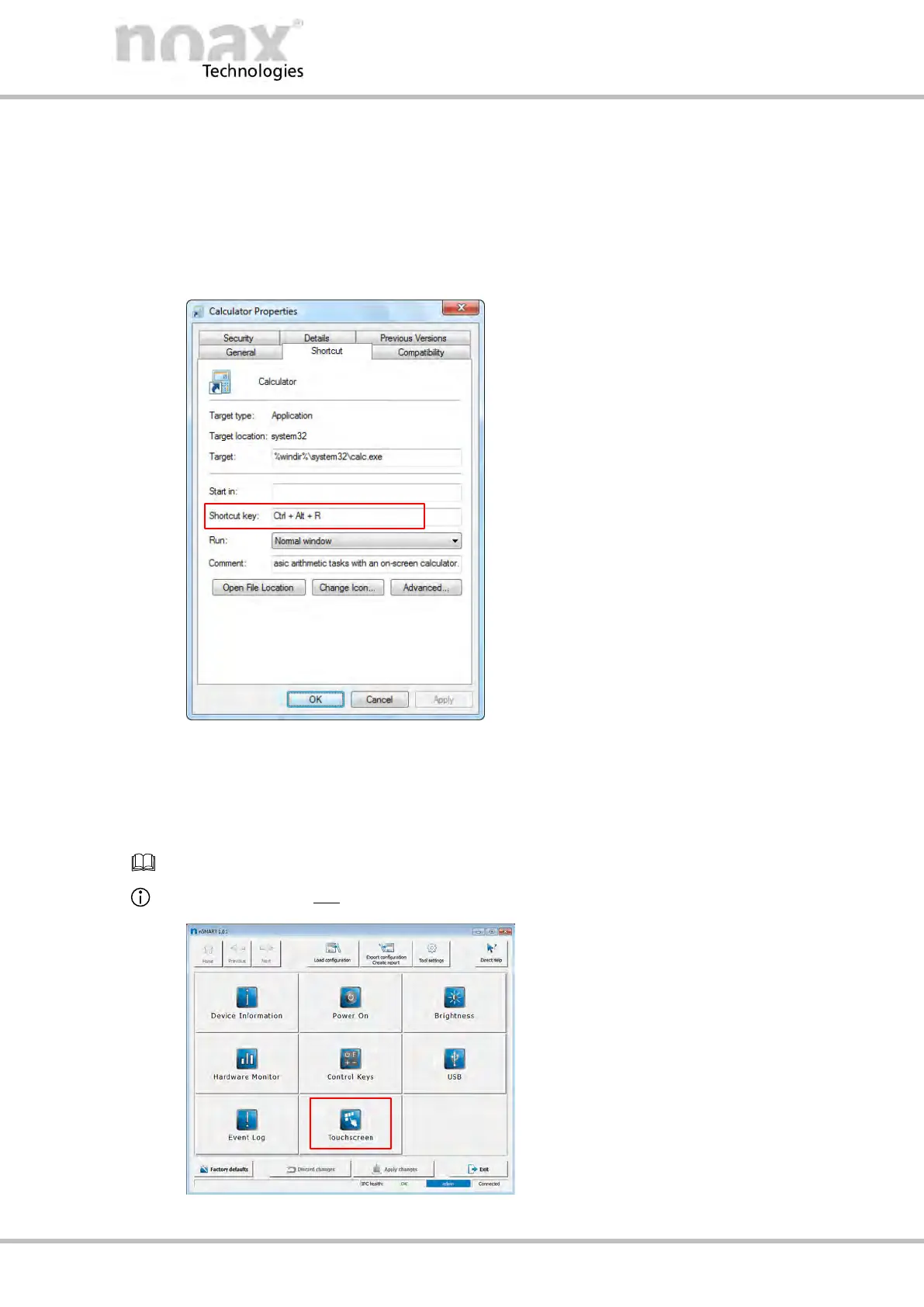 Fig. 60: Example of a key combination in the “Properties” window of a program shortcut