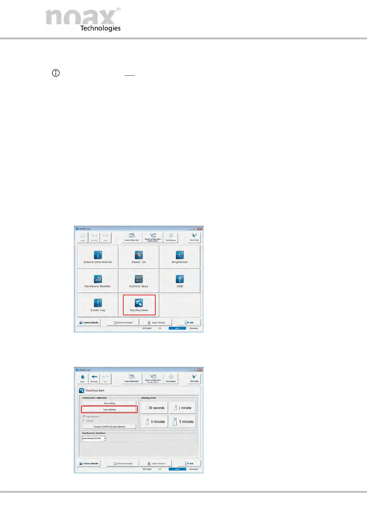 the touch data, the touchscreen calibration will be performed via the noax MCU.