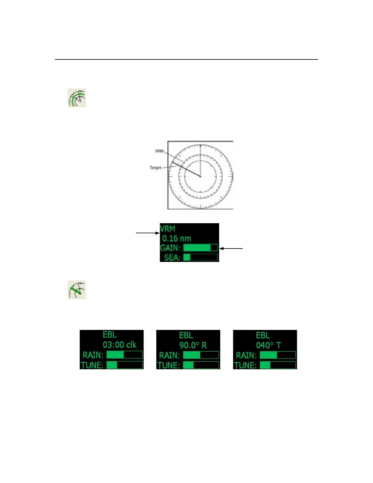 the bearing from the vessel’s position to a target. To adjust the EBL, click