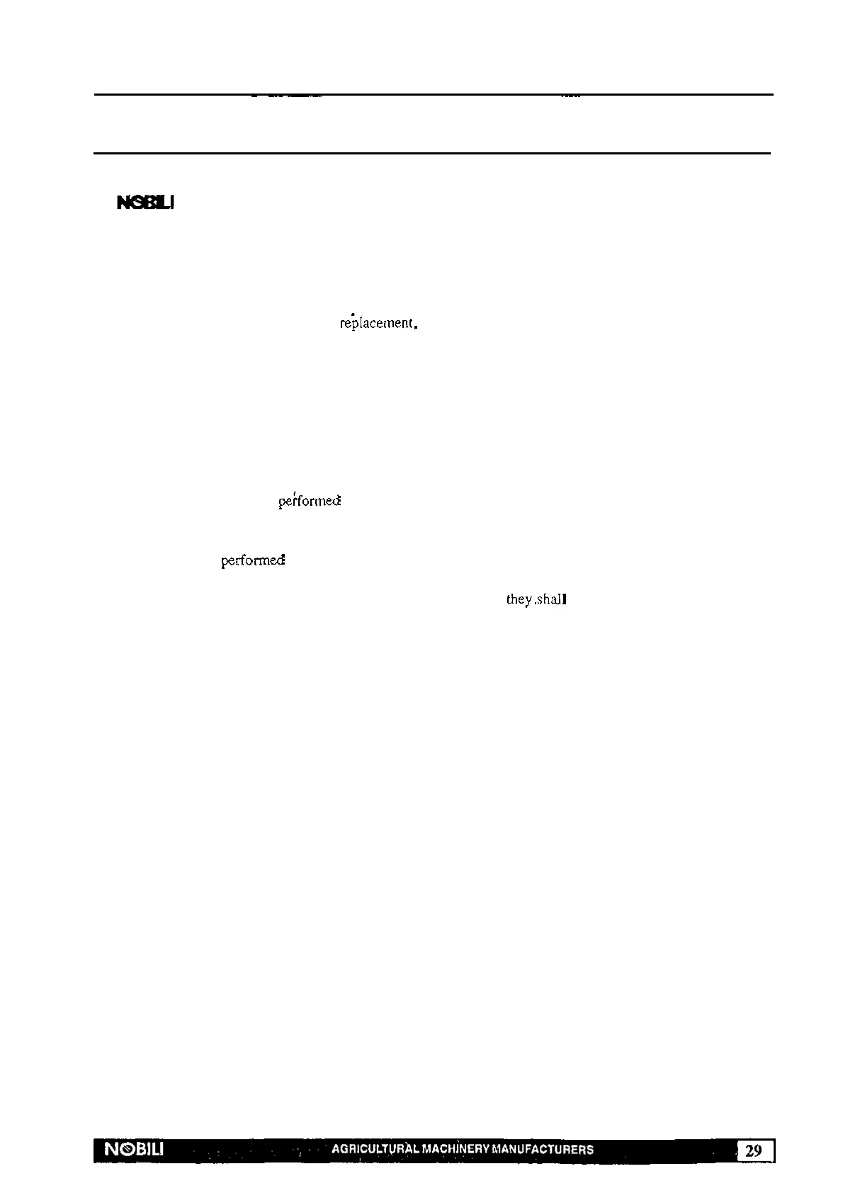 of the machine not manufactured by Nobili (ex.: tyres, transmission belts, cardan shafts, gear boxes,