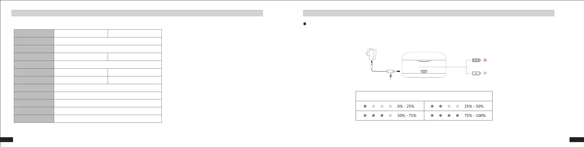 充電ケース内バッテリーインジケーターは残容量に応じて以下のように表示されます