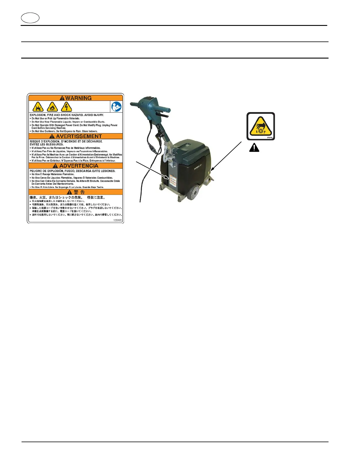 Los adhesivos de seguridad se encuentran en las posiciones indicadas a continuación. Sustituya los adhesivos si se