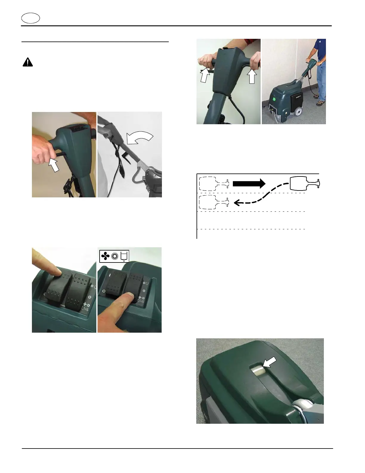 6. Incline la máquina hacia atrás, hacia las ruedas