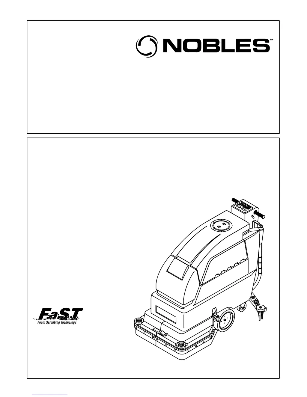 If the FaST System Option on your Nobles Scrubber isn't working, start by checking if the solution switch is activated and the Scrub Mode switch is selected on FaST Scrub. Also, check if the FaST circuit breaker has tripped; if so, determine the cause and reset the 10A circuit breaker button. Inspect for clogged FaST PAK supply hoses and/or connectors, and clean them by soaking in warm water if necessary. Ensure the FaST PAK carton is not empty and is properly connected. Check for a clogged flow control orifice, and clean and reinstall it. If these steps don't resolve the issue, the scrub mode switch, pump, or air compressor may be faulty, or the solution tank filter may be clogged. Drain the solution tank, remove the solution tank filter, clean it, and reinstall.