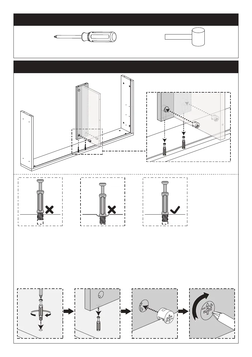 1. Screw the cam bolt [C] into the threaded insert on the panel.