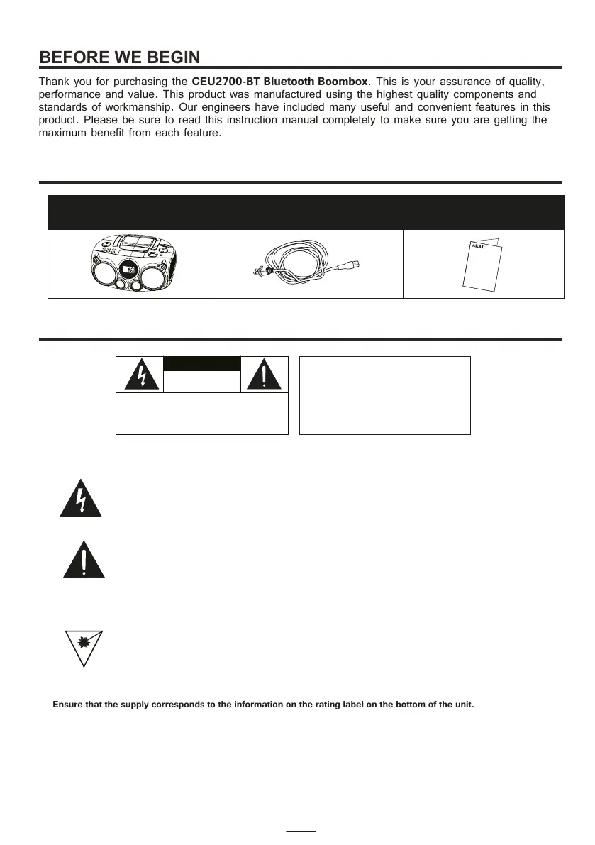 Thank you for purchasing the CEU2700-BT Bluetooth Boombox. This is your assurance of quality,
