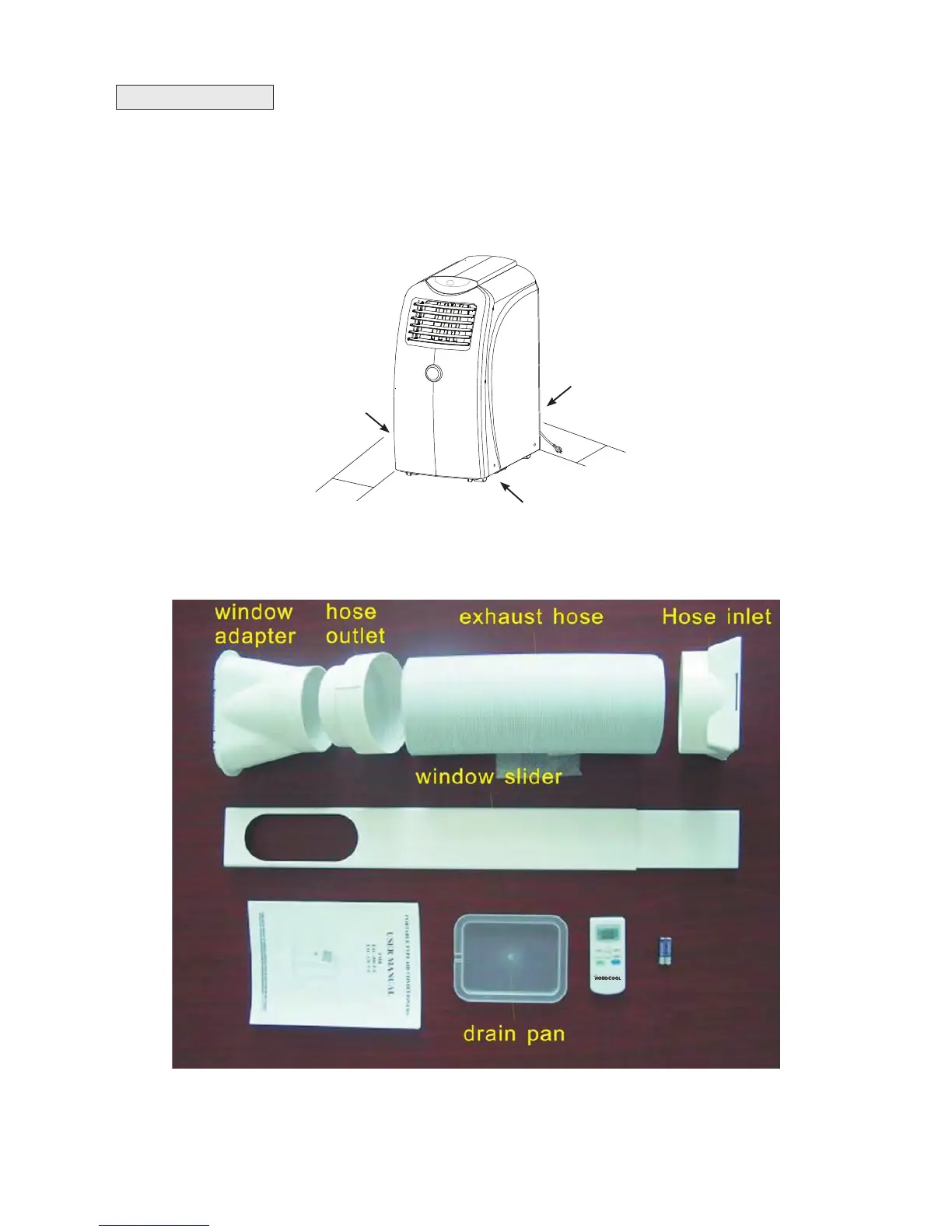 Place the portable air conditioner in a flat location where the air inlets and outlets cannot be covered up. Place the