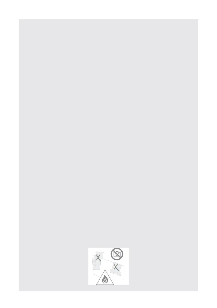 heater. Do not place material or garments on the heater, or obstruct the