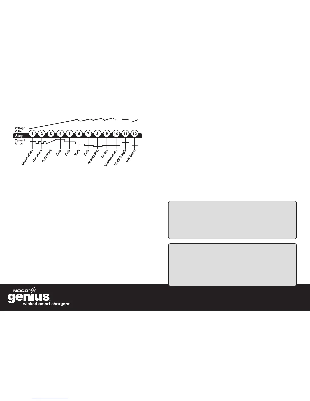 14.4V (12V) and 28.8V (24V) and then discontinues the charge cycle. The cycle