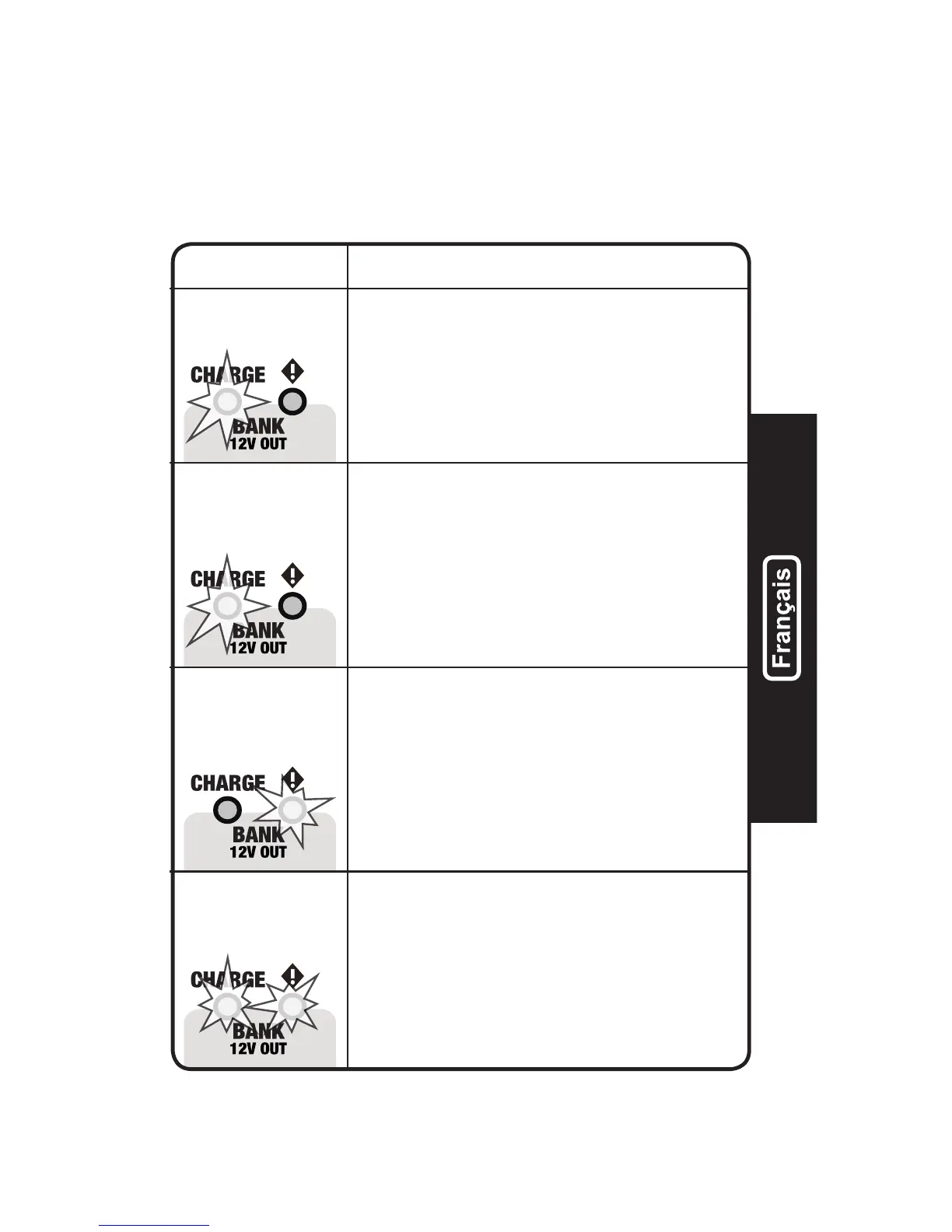 Chaque batterie contient deux (2) DELs — une DEL CHARGE