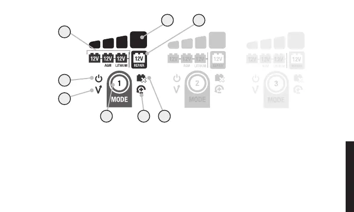 1.) Botón de modo Presionar para recorrer los modos de carga.