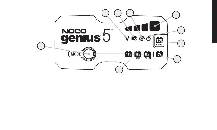 9.) Mode LED Indicates the Charge Mode the charger is currently in. Push the