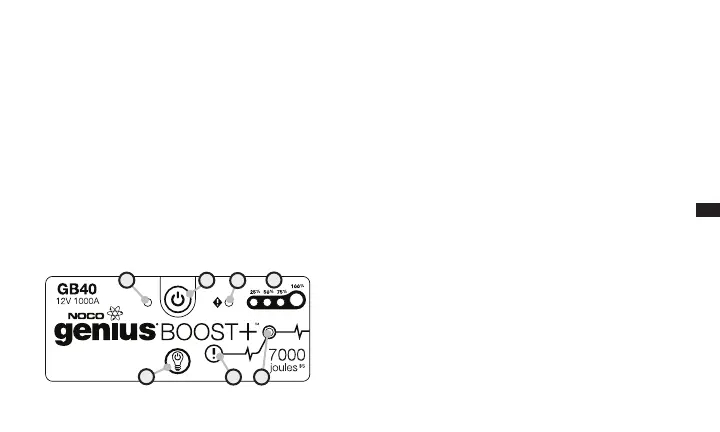 alatt van, az indító LED fény kialszik. Ez azt jelzi, hogy a GB40 készülék nem észleli az akkumulátort. Amennyiben 2 volt teljesítmény alatti akkumulátornál