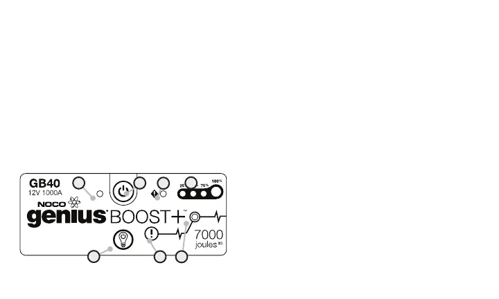 2-voldine, ei sütti Boost LED. See viitab, et GB40 ei suuda akut tuvastada. Kui teil on vaja käivitada alla 2-voldist akut, on võimalik ka manuaalne