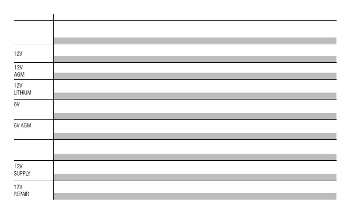 Para cargar baterías AGM de 12 voltios. Cuando se selecciona, el LED blanco de 12 V AGM se iluminará.