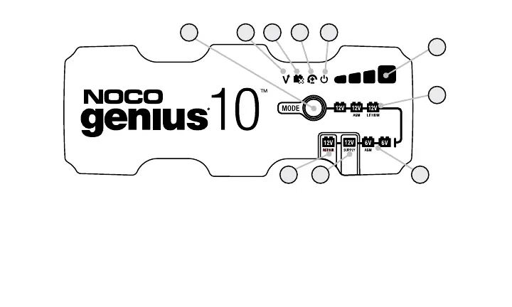 10.) LED de modo de reparación Cuando se seleccione, se iluminará y