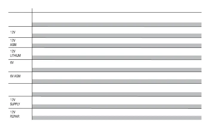 For charging 12-volt Wet Cell, Gel Cell, Enhanced Flooded, Maintenance-Free and Calcium batteries. When selected, the 12V white LED will illuminate.