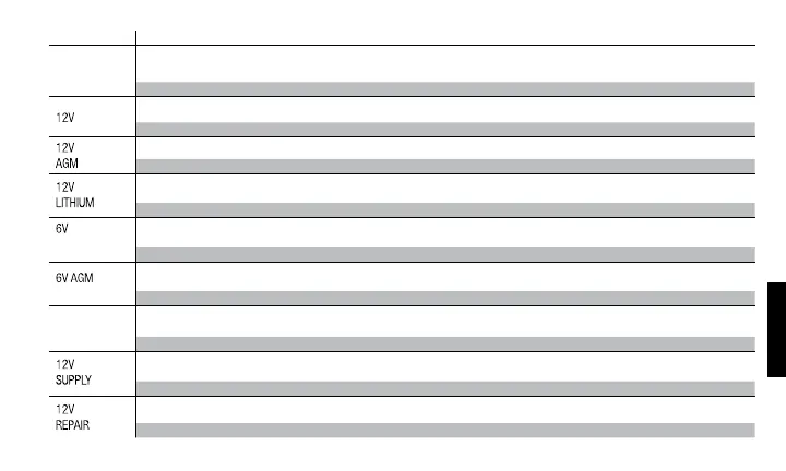 用于为12V湿电池、胶体电池、增强型富液式电池、免维护电池和钙电池充电。当选择时,12V白色LED将亮起。