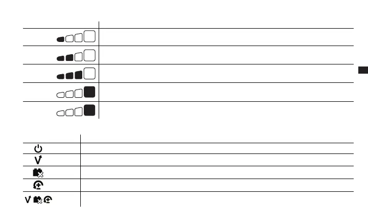 Latauksen 25 % LED vilkkuu hitaasti “on” ja “o” akun ollessa alle 25 % ladattu. Kun akku on 25 % ladattu, palaa